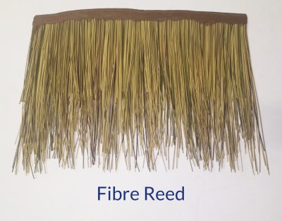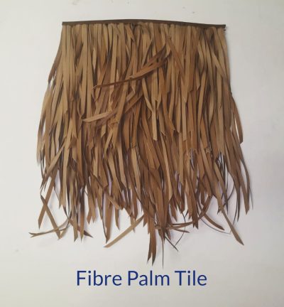 Fibre Palm Tiles was developed as a realistic long lasting replacement for natural leave thatch mediums. The tiles were designed to provide maximum coverage to reduce cost. Although originally intended to be installed on top of a sub roof such as waterproofed ply wood or alternatively corrugated metal sheet roofing. Another unique feature of Fibre Palm tiles are that it is also possible to install these tiles without a sub roof on gazebo and umbrella frames by fitting the Fibre Roofing clip system to the tiles. The tiles simply clip onto 8 mm diameter rods in the usual overlay pattern spaced at 250mm, the tiles can also be stapled or nail onto wood roof battens. The FiberPalm tiles installed without a sub roof will provide you with a 98% waterproof roof covering.The Fibre Reed require 5.4 tiles per square meter to provide a smooth completely natural looking grated thatch finish that will even convince people familiar with thatch roofing of its authenticity. Often these people will only realize that the thatch is synthetic after physically touching the roof. We have the capacity and technology colour match our synthetic material to any natural material or to any colour specified by a customer.